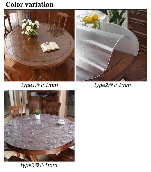 | 60CM 70CM 80CM 90CM 100CM 110CM 120CM PVCテーブルクロス、シンプルで明るいお部屋を彩ります! 無色透明で、木目や塗装色などの、家具本来の美しさを損なうことなくご使用いただけます。 耐久性に優れていて、 ホテル、レストランにおけるハードユースにも安心して使用される! 簡単に洗浄。 水と油の汚れ防止、重い圧力に抵抗し、寒さと熱、酸とアルカリ。テーブルの天板保護に最適なマットです! | |