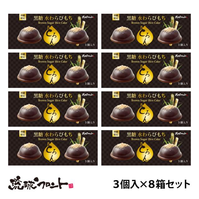 【送料無料】 黒糖水わらびもち とろん(3個入×8箱セット) 沖縄 限定 お土産 黒糖 わらびもち わらび餅 きな粉 きなこ 水わらび餅