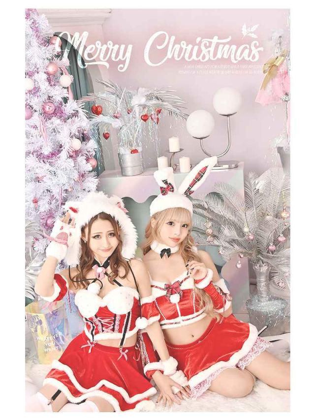 ☆肉球デザインの手袋やリボンが装飾され細部までしっかりこだわられたギャルサンタコスプレ。