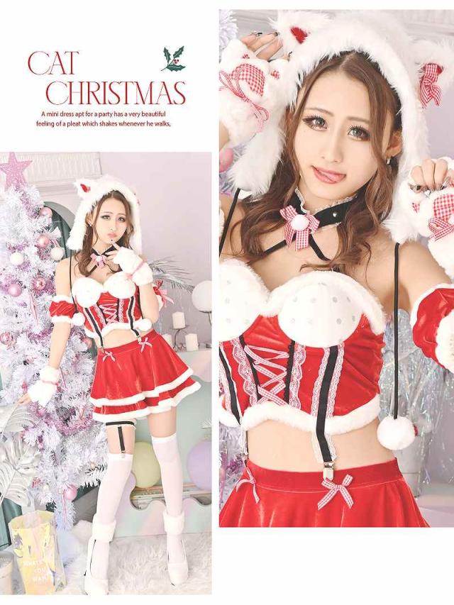 ☆もこもこのファーキャット帽子をかぶればアニマル要素もプラスされた欲張りサンタコスプレになっています。