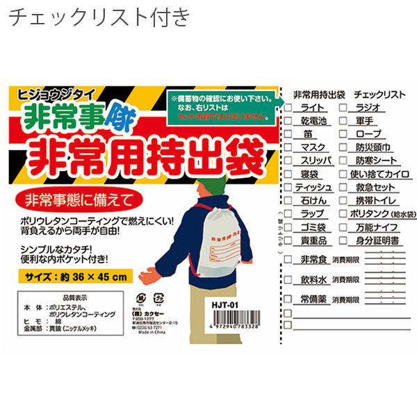 非常用持ち出し袋 非常事隊 非常用持出袋 36×45cm HJT-01 | 防災リュック 防災グッズ 避難 災害対策 子供 女性