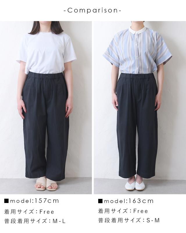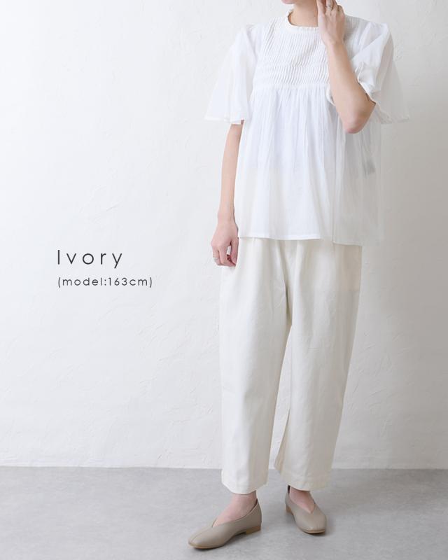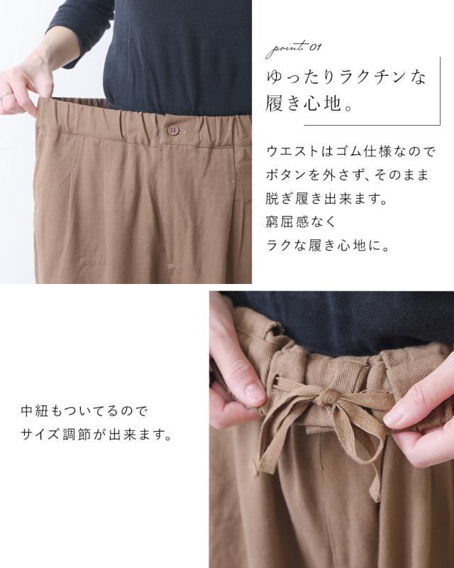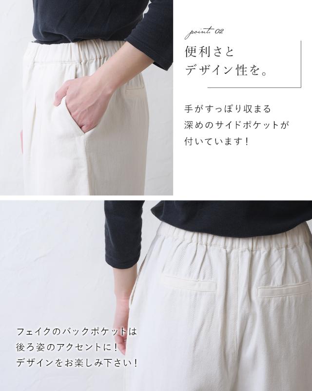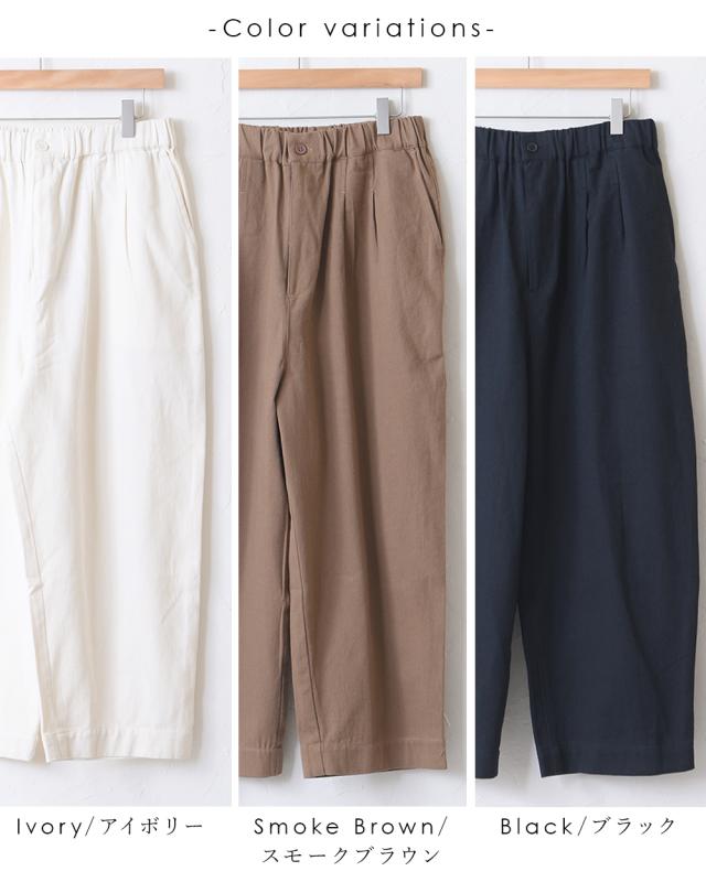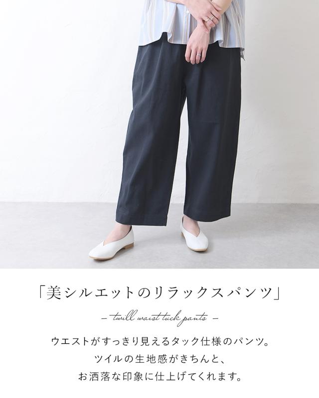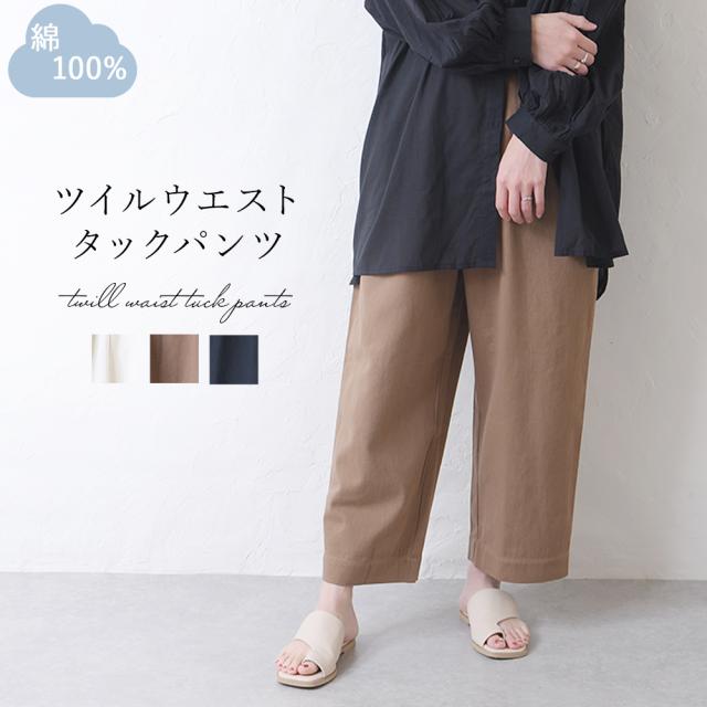 パンツ ツイルタックパンツ ボトムス ワイド ツイル 綿100% 無地 アイボリー 白 ブラウン 黒 カジュアル ゆったり ナチュラル レディース 春 オールシーズン 夏 春新作