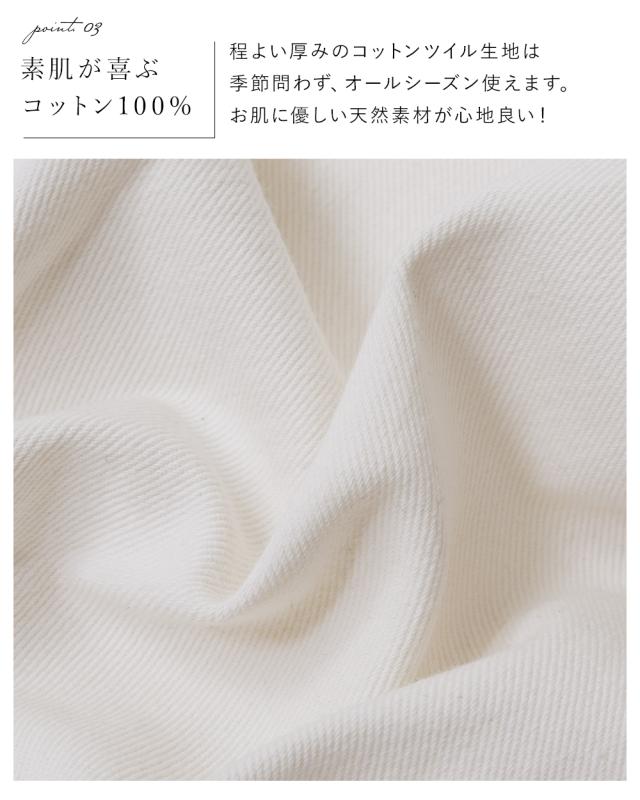 程よい厚みのコットンツイル生地は季節問わず、オールシーズン使えます。