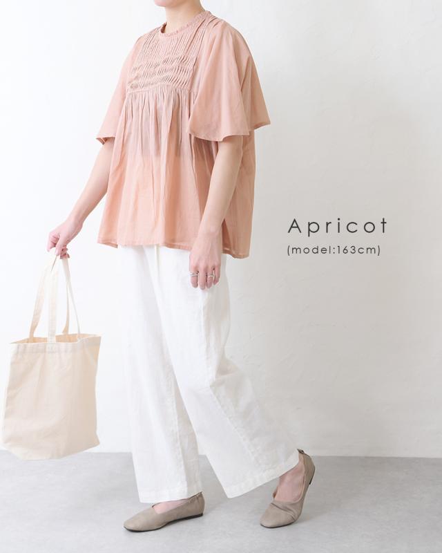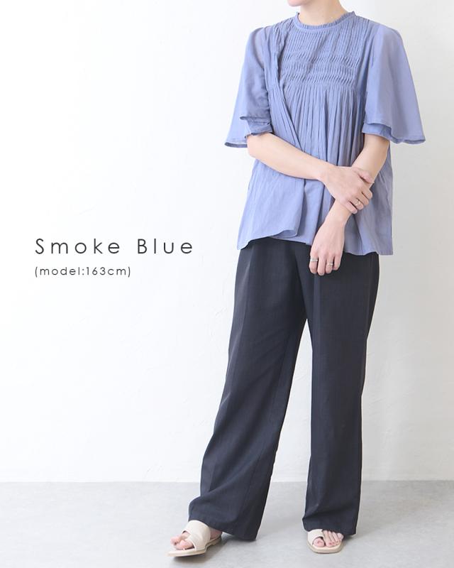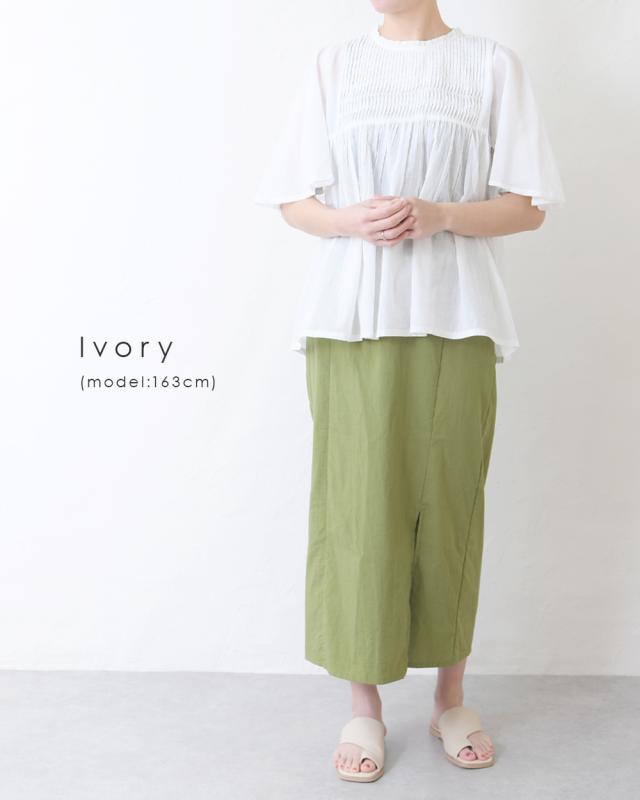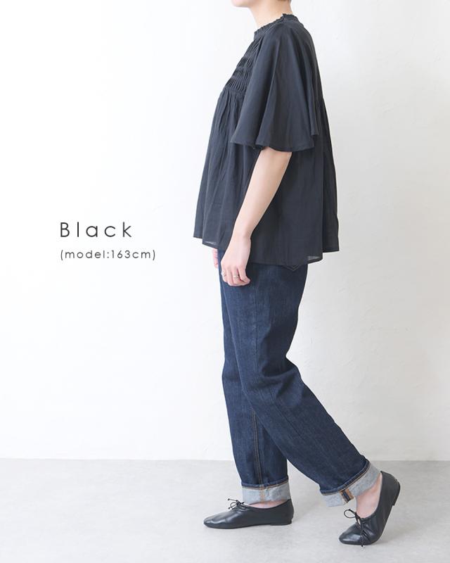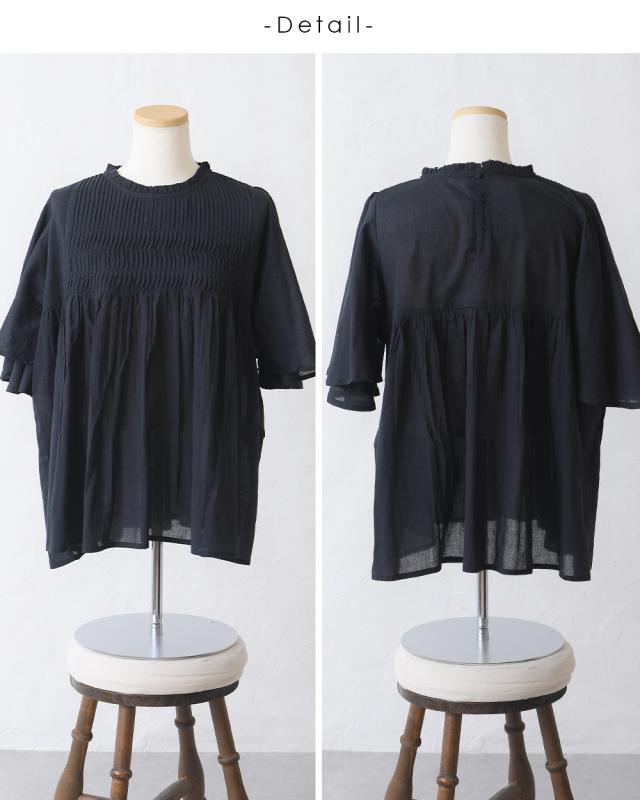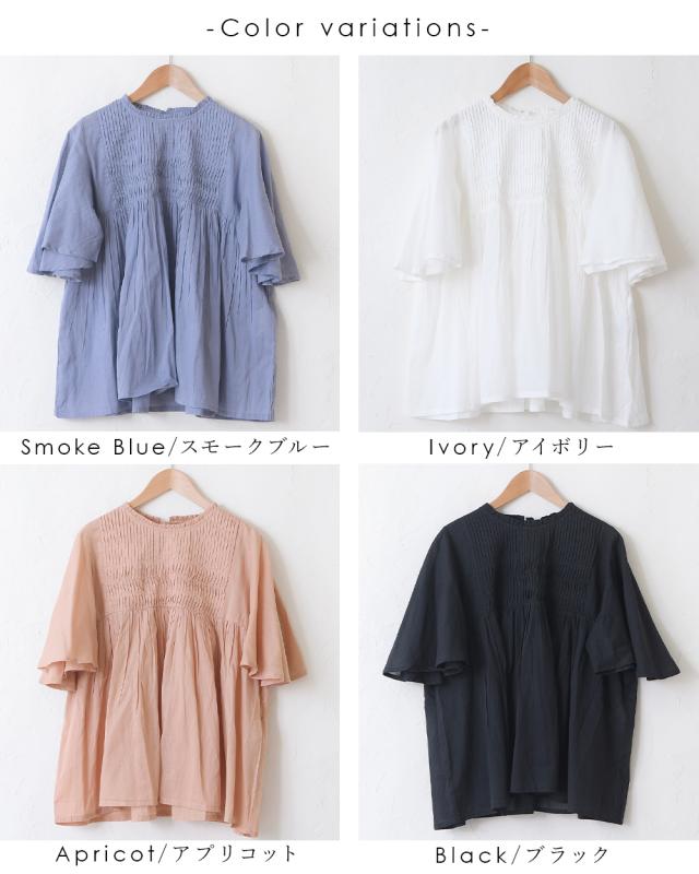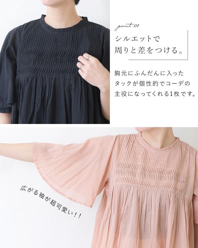 フレアに広がる袖と裾のふんわりシルエットが可愛いタックブラウス。