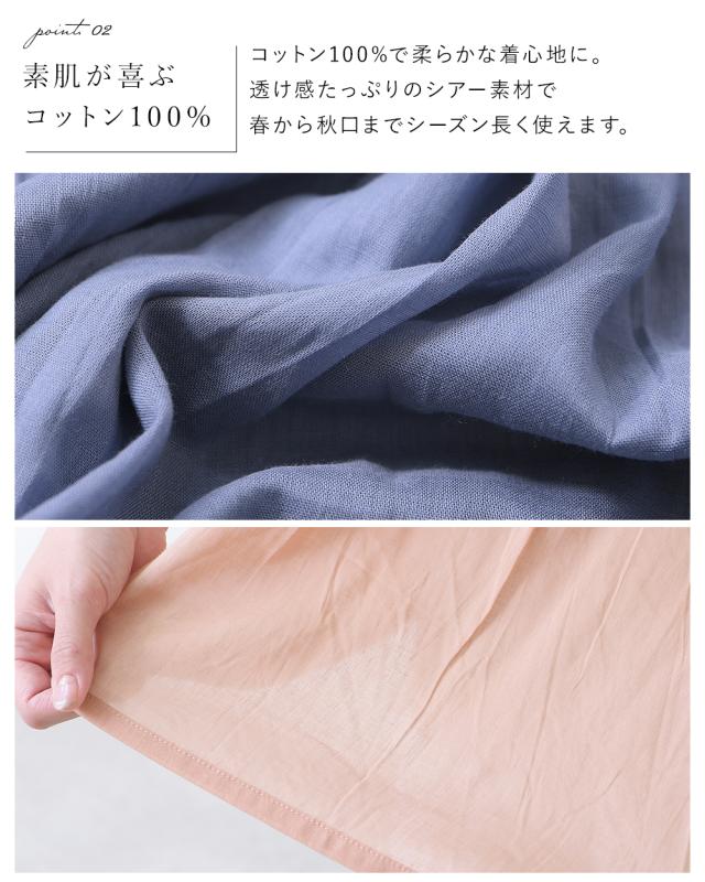 シアー素材で透け感のある涼し気なブラウスです。