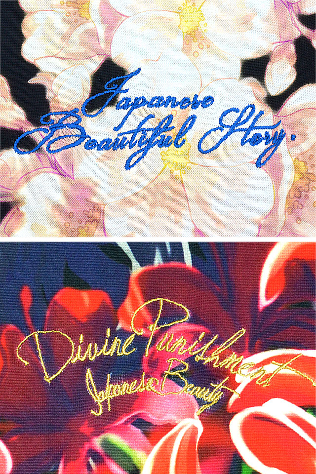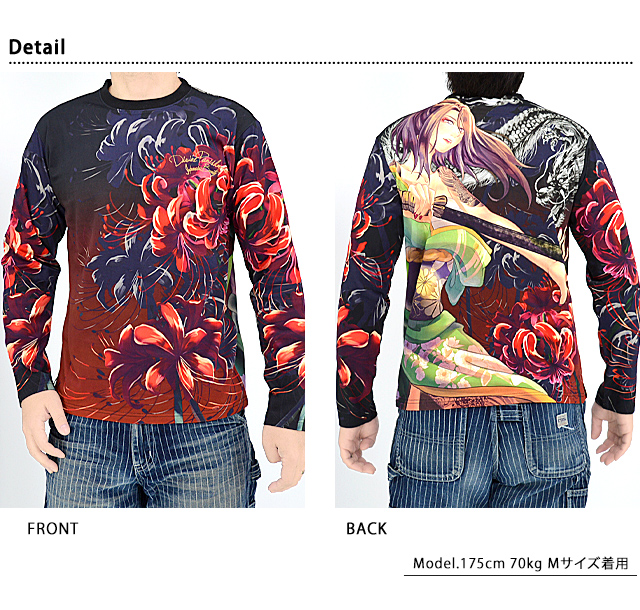 絡繰魂の姉妹ブランドとして誕生した、従来の和柄から抜け出し、和の持つ美しさを融合させた【抜刀娘】から「抜刀娘 美麗グラデーションロングTシャツ(234864)」のご紹介です。 今回はいつもの抜刀娘デザインとは一味違う! フロント左胸のレタードには刺繍を採用しています。 ボディーには、綿100%のさらりとした柔らかなTシャツ生地を使用。 | |||||||||||||||||||||||||