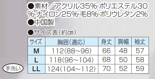 ●素材/アクリル35%・ポリエステル30%・ナイロン25%・毛8%・ポリウレタン2%