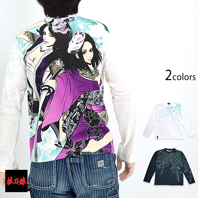 抜刀娘 能楽ロングTシャツ 抜刀娘 234866 和柄 和風 花魁 着物 長袖