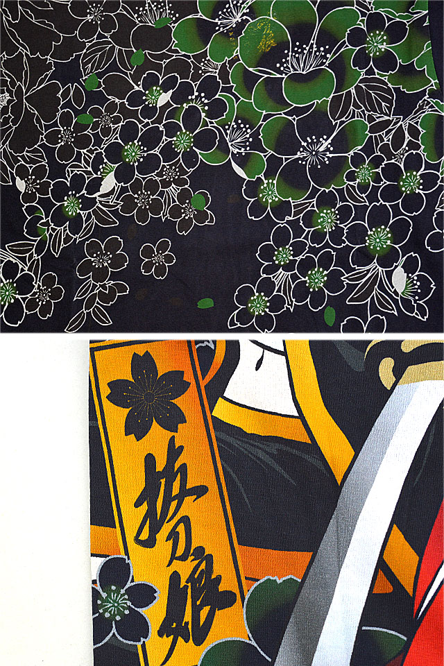 身頃を跨いで描かれた桜は袖へと続いており、実際に着用した際には柄がより立体的に浮かび上がる仕様になっています。