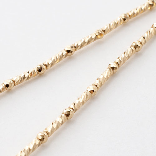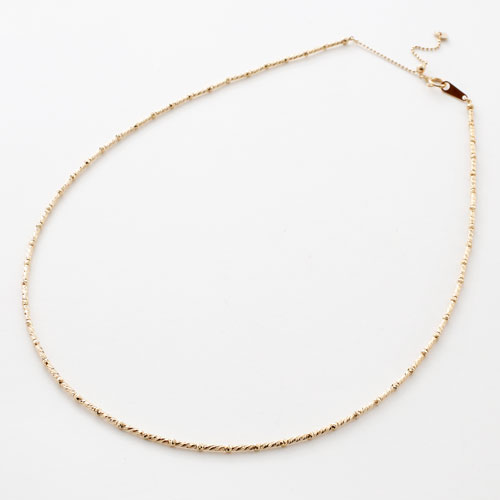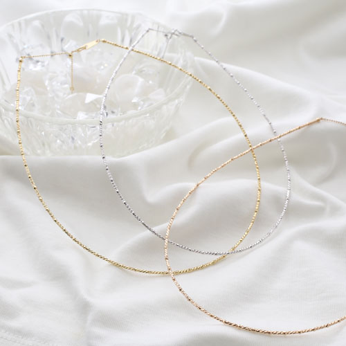 高級素材・18金を贅沢に使用した、シンプルで細く繊細なショートロング(S&L)デザインのミラーボールカット入のネックレス。