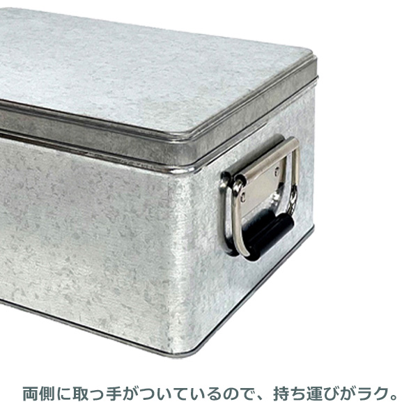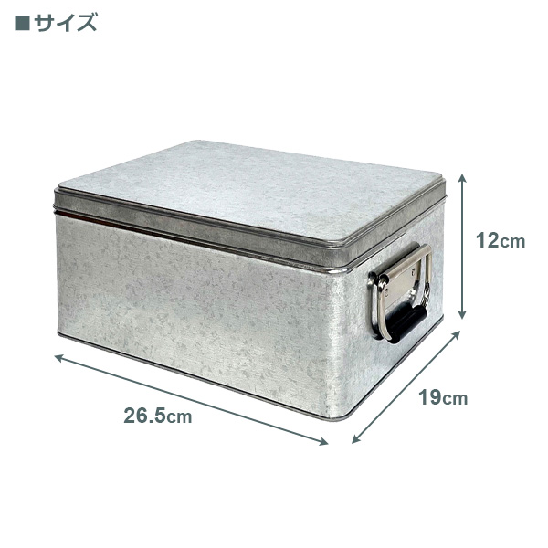 収納 ケース ボックス 蓋つき 金属 缶 レトロ トタン さびにくい 防湿 スタッキング 取っ手付き 持ち運び おしゃれ 昔ながら 懐古的 インテリア デザイン 幅19 奥行26.5 高さ12 センチ cm 衣類 お茶 貯蔵庫 備蓄 玩具 箱 コンテナ ヴィンテージ インダストリアル ツールボックス ガレージ 車庫 リビング クローゼット パントリー キッチン 台所 防災用品 保存食 四角 棚上 容器 toy box dry food rice tea galvanized iron 4517657305007