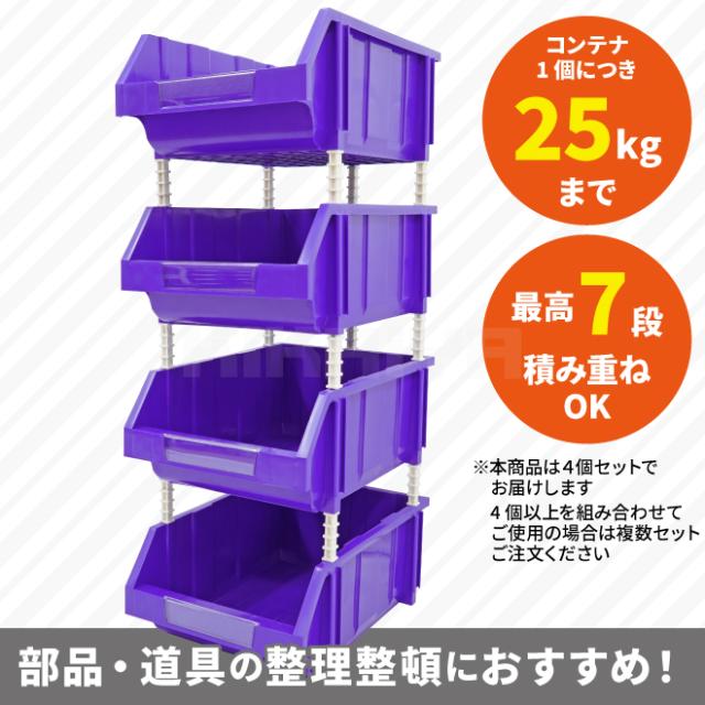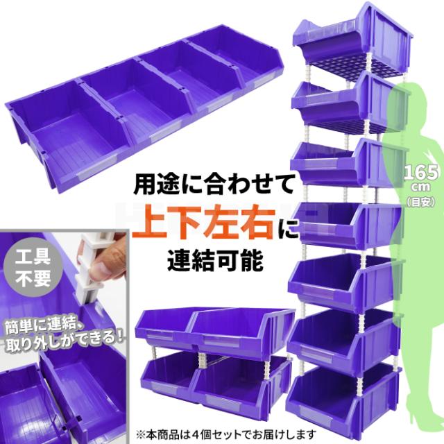 連結 パーツボックス 4個セット 収納棚 部品収納 W350×D500×H200mm パーツコンテナ 25kg×4pcs パーツラック KIKAIYA