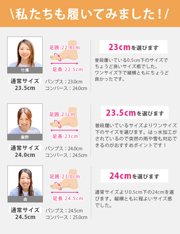 取り扱いサイズ:23cm 23.5cm 24cm 24.5cm 25cm