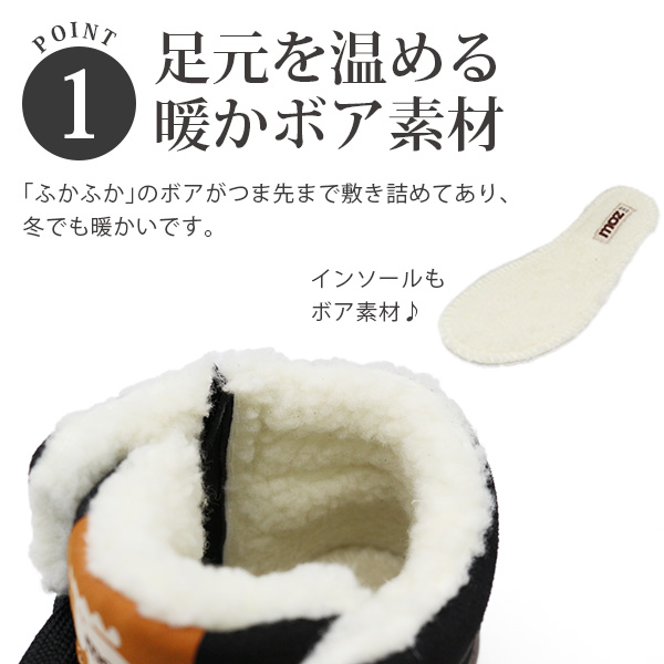 ふかふかのボアで足首まで暖かい「moz」のブーツスニーカー。