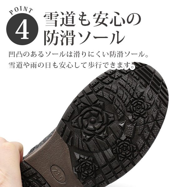 はっ水加工で雨や雪の日も快適に履きいただけます。