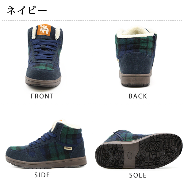 モズ moz スニーカー シューズ レディース ミドルカット ブーツ 靴 防水 雨 黒 ブラック ネイビー チェック 冬 雪 防寒 もこもこ おしゃれ かわいい 軽量 軽い 裏起毛 もこもこ 防滑 ボア 人気 秋 冬 暖かい ギフト プレゼント MZ-456