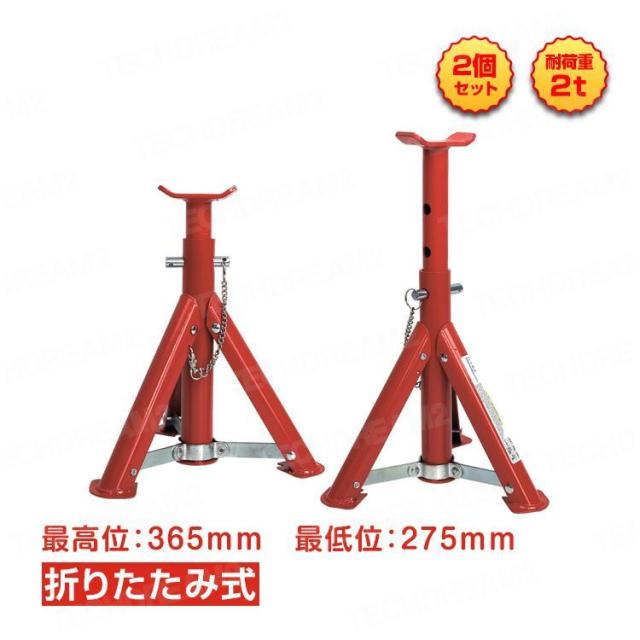 ジャッキスタンド 2t 折りたたみ 2個セット 馬ジャッキ リジッドラック 最低位275mm タイヤ交換 軽量 車 車用品 カー用品 メンテナンス