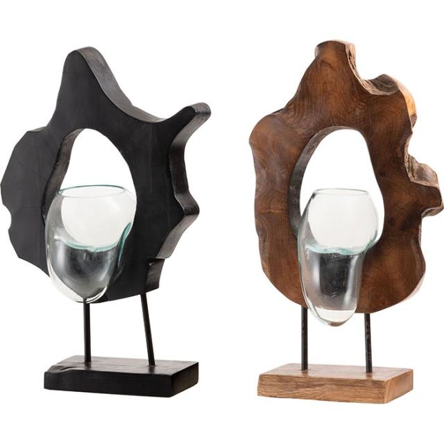ガラスオブジェ オブジェ ガラス 置物 天然木 インテリア アート 鉢 プランター テラリウム アクアリウム 花瓶 おしゃれ 雑貨