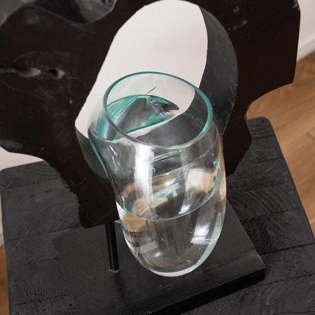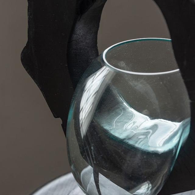 天然木の個性を活かしたガラスオブジェ。溶かしたガラスの器を木部に垂らし硬化させる事で、ひとつひとつ違った形状に仕上がっています。木部は輪切りにした丸太を利用した個性溢れるフォルムで、ガラスを外してもオブジェとして活躍します。花瓶やプランターとして、テラリウムアクアリウムを作る器として。様々な使い方でお楽しみいただけます。カラーは、ナチュラル(SLY-31NA/4985155228713)ブラック(SLY-31BK/4985155228706)です。 ※ガラス・木部の形状のご指定はお受けできませんので、予めご了承ください。