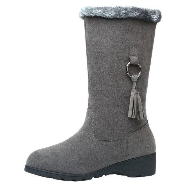ムートンブーツ レディース スノーブーツ ミドルブーツ ロングブーツ ボアブーツ ファーブーツ ムートンシューズ 裏ボア 裏起毛 グレー 暖かい 履きやすい 歩き
