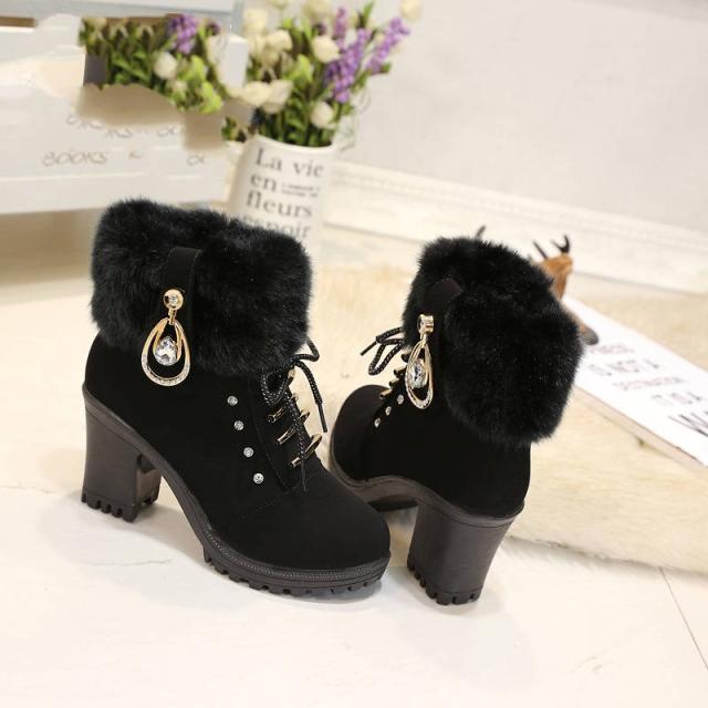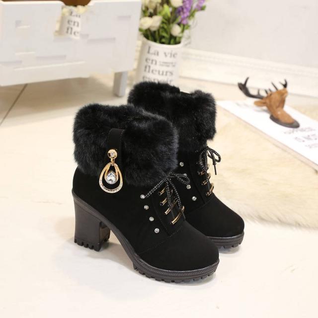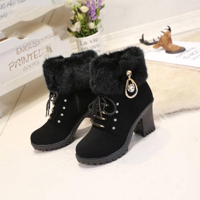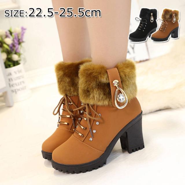 ムートンブーツ レディース スノーブーツ ショートブーツ ミドルブーツ 太めヒール ブラック ブラウン ボアブーツ ファーブーツ ムートンシューズ 裏ボア 裏起毛 暖かい 履きやすい 歩きやすい 防寒 防滑 通学 通勤