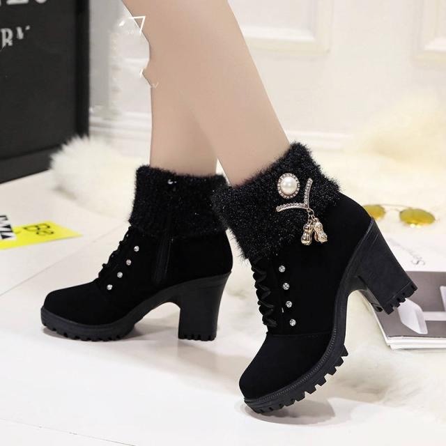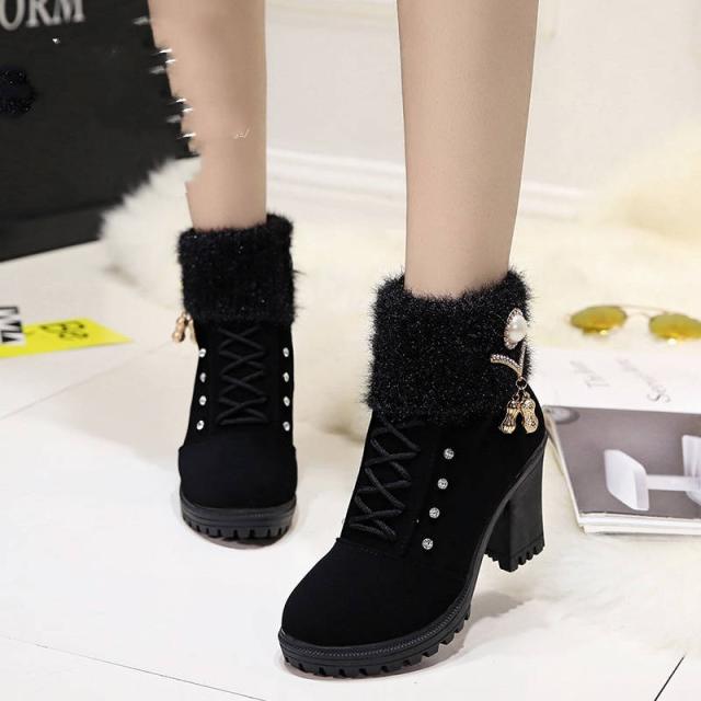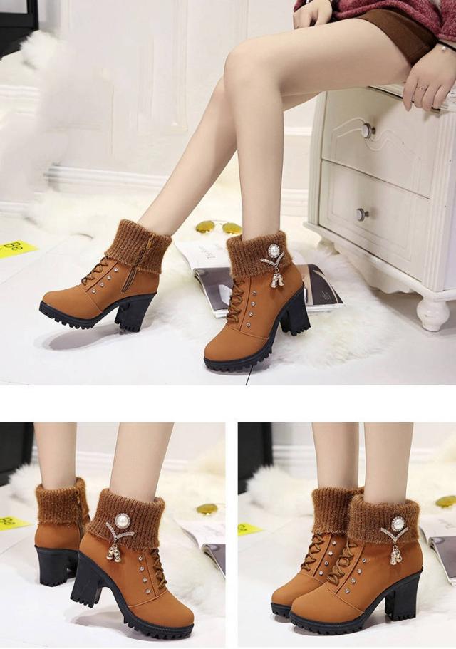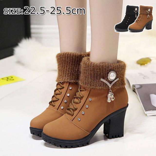 ムートンブーツ レディース スノーブーツ ショートブーツ ミドルブーツ 太めヒール ブラック ブラウン ボアブーツ ファーブーツ ムートンシューズ 裏ボア 裏起毛 暖かい 履きやすい 歩きやすい 防寒 防滑 通学 通勤