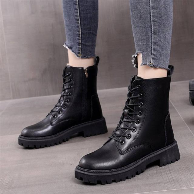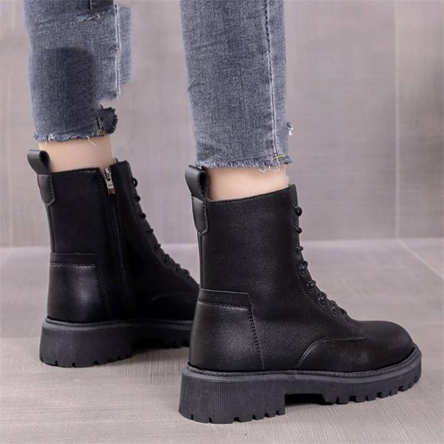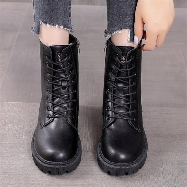 ブラック ムートンブーツ レディース スノーブーツ ミドルブーツ レースアップ ボアブーツ ファーブーツ 厚底 裏ボア 裏起毛 暖かい 履きやすい 歩きやすい 防寒 防滑 通学 通勤 滑らない 痛くない 冬 大人 大きいサ