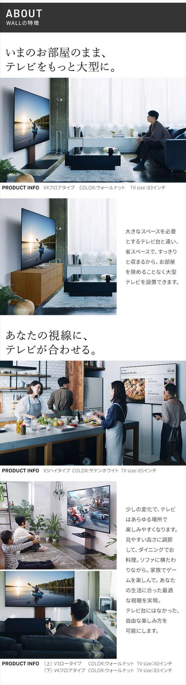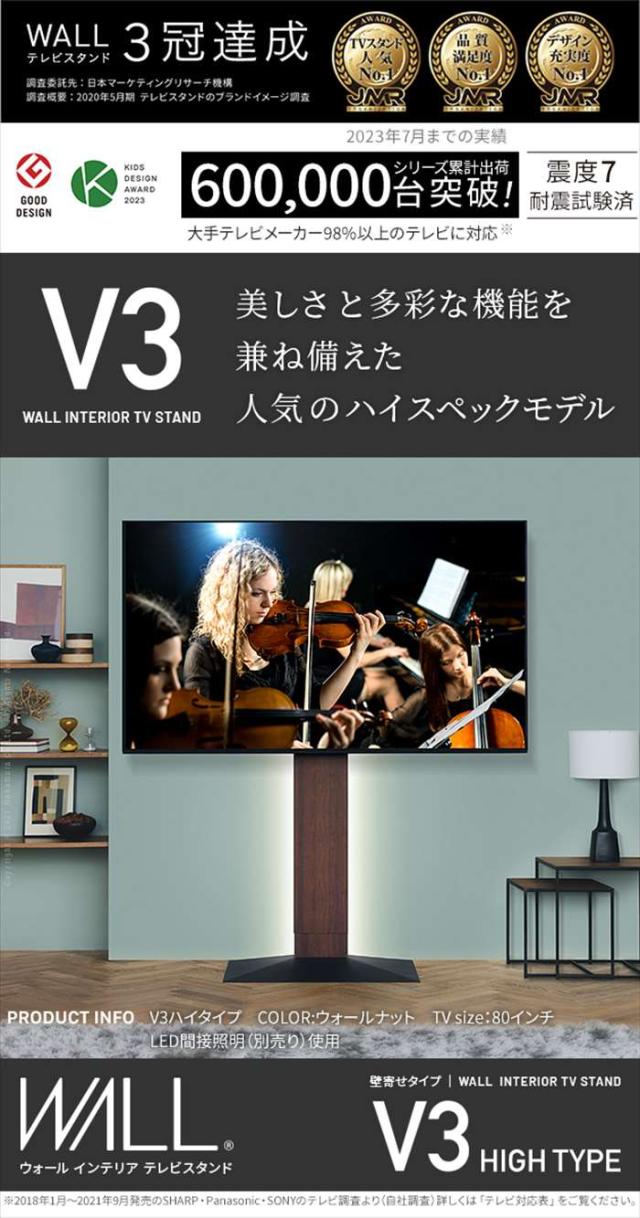 北海道・沖縄・離島配送不可 代引不可 グッドデザイン賞受賞 テレビ台 WALLインテリアテレビスタンドV3 ハイタイプ 32〜80v対応 壁寄せテレビ台 TVスタンド 背面収納 コード収納