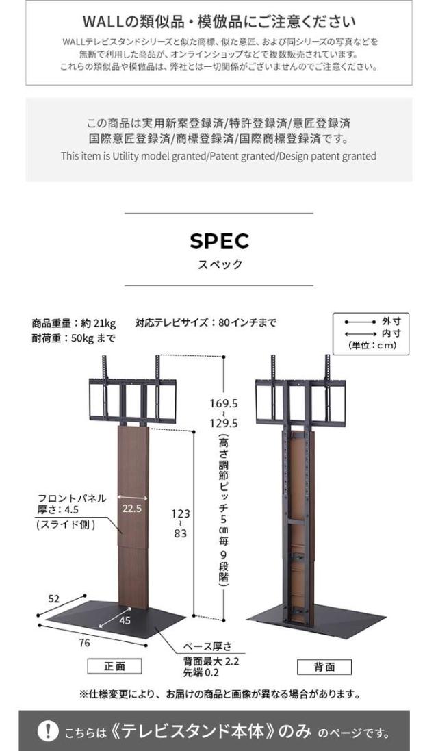 テレビスタンド 壁寄せ WALL WALL ウォール テレビスタンド テレビ用スタンド テレビラック 壁寄せ 壁寄せテレビスタンド 壁寄せテレビラック TVスタンド TVラック テレビ台 TV台 省スペース 自立式 自立型 家具 インテリア リビング ダイニング 部屋 室内 オフィス 会社 会議室