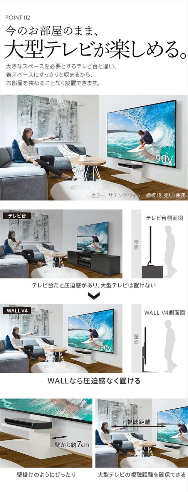 北海道・沖縄・離島配送不可 代引不可 テレビ台 WALLインテリアテレビスタンドV4 フロアタイプ 60〜90v対応 壁寄せテレビ台 TVスタンド 大型テレビ専用 背面収納 コード収納