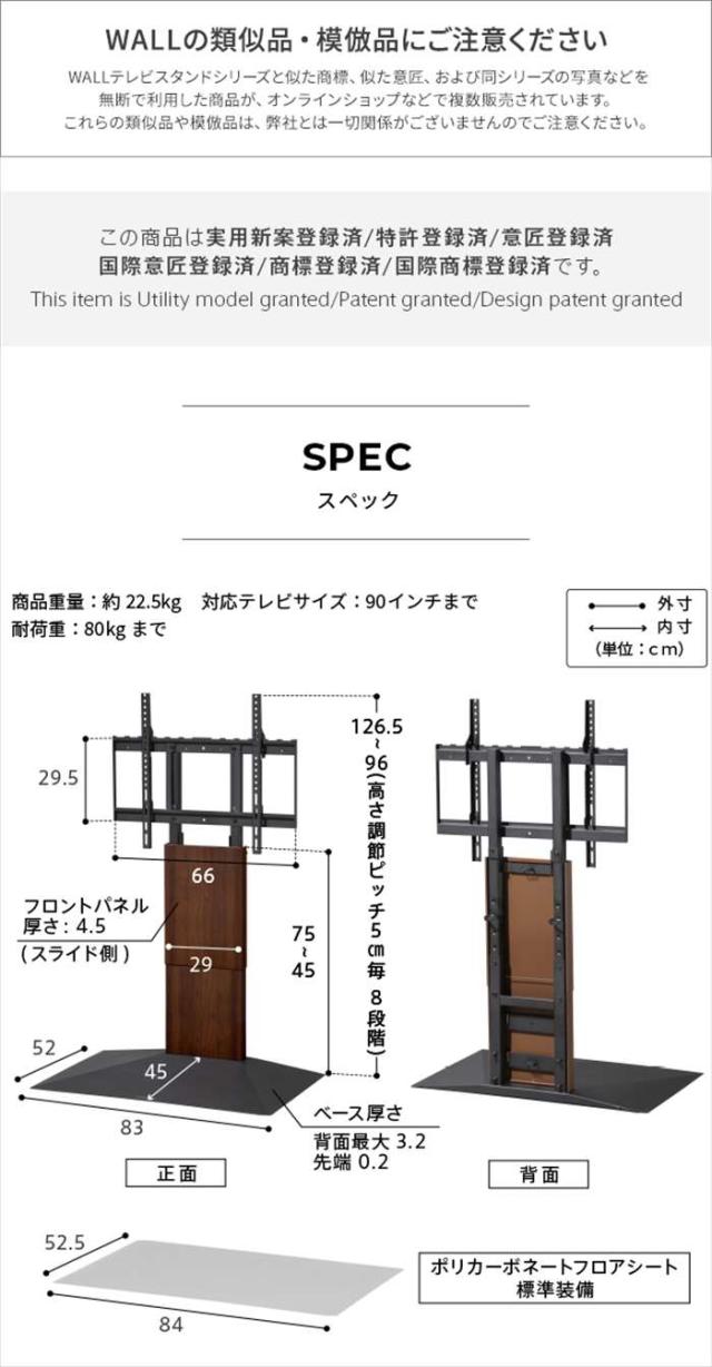 テレビスタンド 壁寄せ WALL WALL ウォール テレビスタンド テレビ用スタンド テレビラック 壁寄せ 壁寄せテレビスタンド 壁寄せテレビラック TVスタンド TVラック テレビ台 TV台 省スペース 自立式 自立型 家具 インテリア リビング ダイニング 部屋 室内 オフィス 会社 会議室