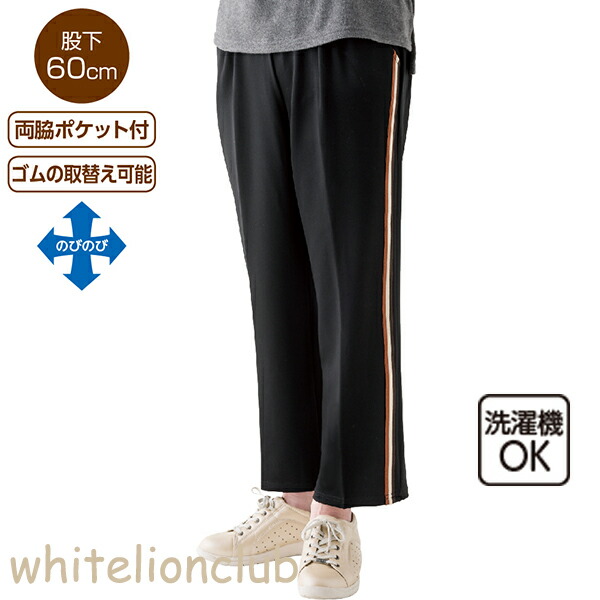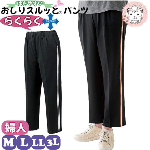 おしりスルッとパンツ らくらく ライン入りパンツ 片手で履けるパンツ M/L/LL/3L | 婦人用 履きやすい ズボン シニアファッション 介護用ズボン 高齢者 リハビリ