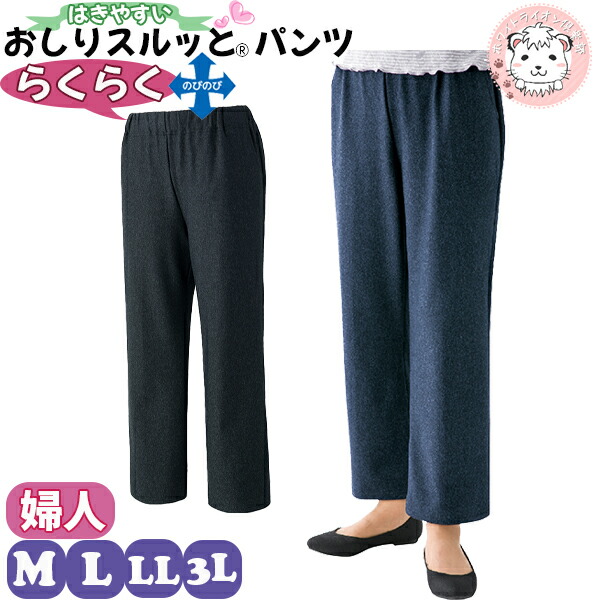 おしりスルッとパンツ らくらく ハイテンションパンツ 片手で履けるパンツ M/L/LL/3L | 婦人用 履きやすい ズボン シニアファッション 介護用 ズボン リハビリ