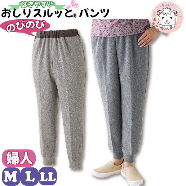 おしりスルッとパンツ ニット ホッピングパンツ 片手で履けるパンツ M/L/LL | 婦人用 履きやすい ズボン シニアファッション 介護用 ズボン 高齢者 リハビリ