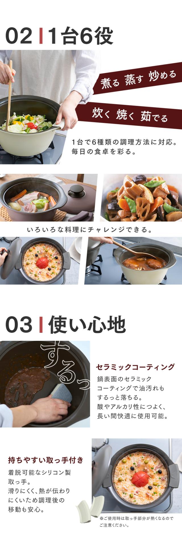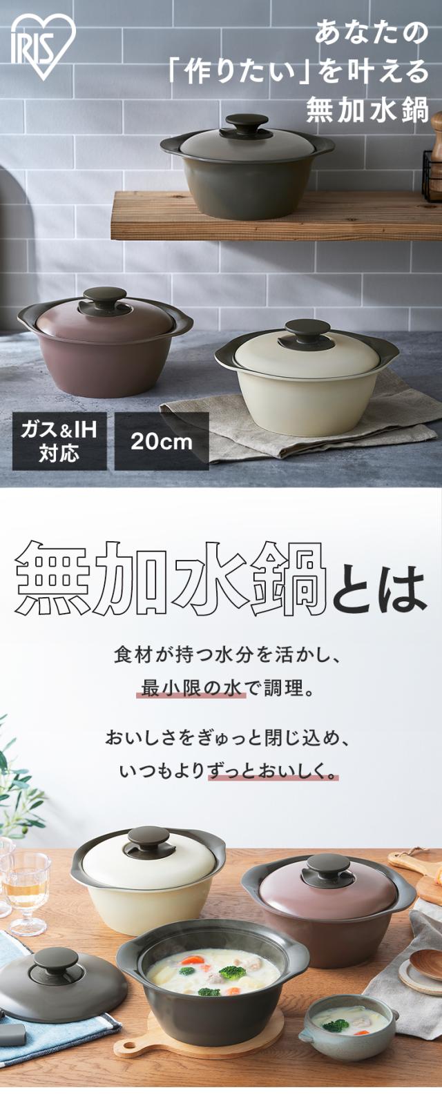 鍋 20cm 無加水鍋 両手鍋 IH対応 ガス対応 無加水鍋 深型 MKS-20 セラミック 蓋付き 取っ手付き 一人暮らし 新生活 北欧 20cm 煮る 蒸す 炒める 炊く 焼く 茹でる アイリスオーヤマ 送料無料 プレゼント