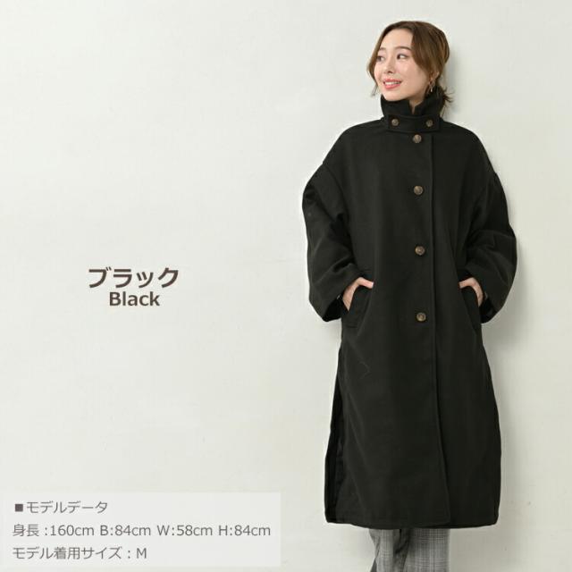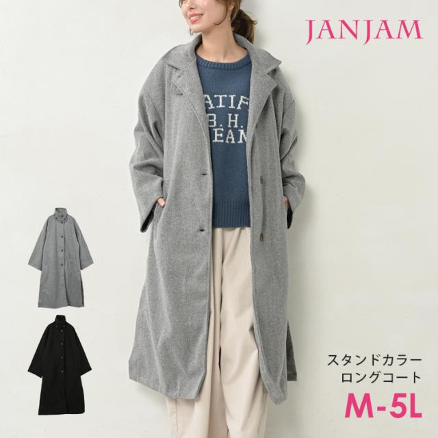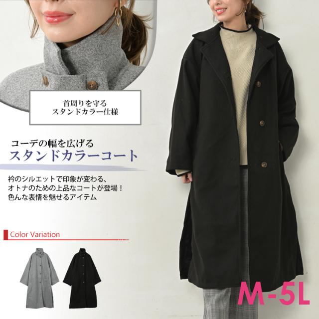 送料無料※沖縄/北海道対象外 大きいサイズ レディース スタンドカラーコート 長袖 ロングコート フロントボタン Aライン アウター M/LL/3L/4L/5L ゆったりサイズ ぽっちゃり女子 プラスサイズ