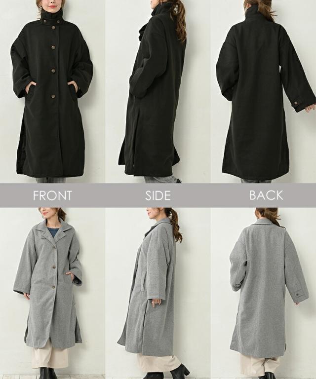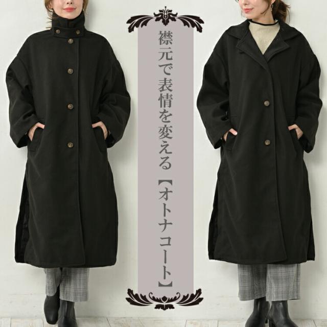 襟元で表情を変えるスタンドカラーコート。 長袖アウター 30代 40代 50代 秋服 冬服 秋物 冬物 2023 ロングコート 2way 大人 上品 カジュアル 体型カバー おしゃれ きれいめ ゆったりサイズ ぽっちゃり女子 プラスサイズ 大きいサイズ レディース 長袖アウター 長袖コート ロング丈コート Aラインコート ロングコート スタンドカラー アウター 上着 ロング丈 ミモレ丈 膝下丈 サイドスリット 深めスリット 軽い着心地 フロントボタン 前開きボタン 前開きデザイン シングルボタン 長袖 ワイド袖 スタンドカラー テーラードカラー チェスターコート風 2WAY ドロップショルダー ポケット 裏地あり 秋服 冬服 秋物 冬物 秋アウター 冬アウター 秋コート 冬コート あたたかい あったかい 保温 お尻が隠れる着丈 お尻すっぽり丈 長め着丈 体型カバー ゆったり 大きめ 大人 カジュアル フェミニン きれいめ かわいい 着こなし おしゃれ 定番 秋コーデ 冬コーデ ファッション 大きめ 女性 婦人用 ミセス 30代 40代 50代 2023 秋 冬 灰色 黒 M LL 3L 4L 5L 9号 13号 15号 17号 19号 cam-aw-jk0278
