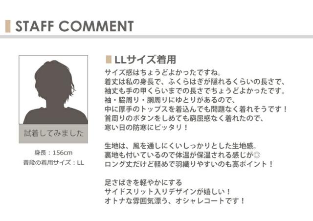 LL:着丈117 肩幅61 バスト128 袖丈49 脇周54 袖口周44 裾周146