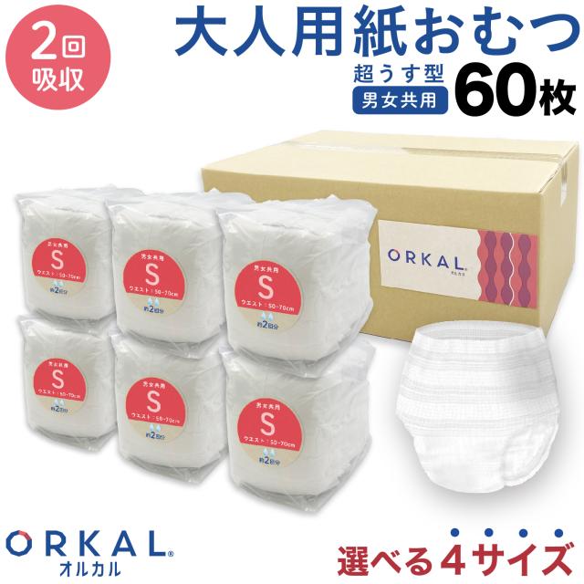 オルカル 大人用紙おむつ うす型 大人用 紙おむつ 紙パンツ オーガニックコットン 男性 女性 2回吸収 S M L XL サイズ 介護 災害 ORKAL