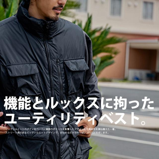 中綿ベスト メンズ 中綿ブルゾン ブルゾン アウター ジャケット ブランド 大人 おしゃれ ユーティリティ ポケット 軽量 厚手 防寒 ブラック 黒 暖かい 保温 中綿 ベスト CavariA カジュアル ユニセックス 男性 男 服 秋 冬 秋冬 ファッション 即日発送 [CAB23-29]