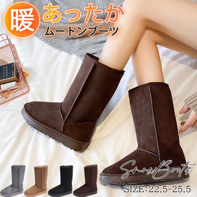 ムートンブーツ レディース スノーブーツ ロング ショートブーツ 高め 裏ボア 裏起毛 滑り止め フラット 暖か 防寒 防風 冬
