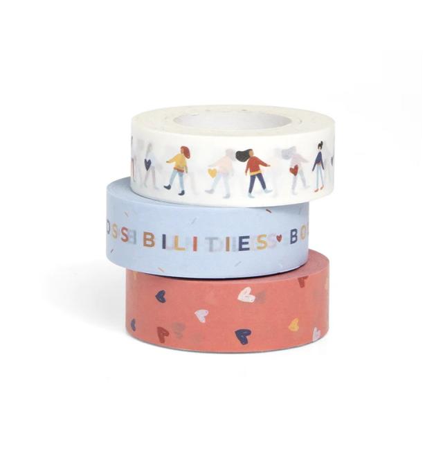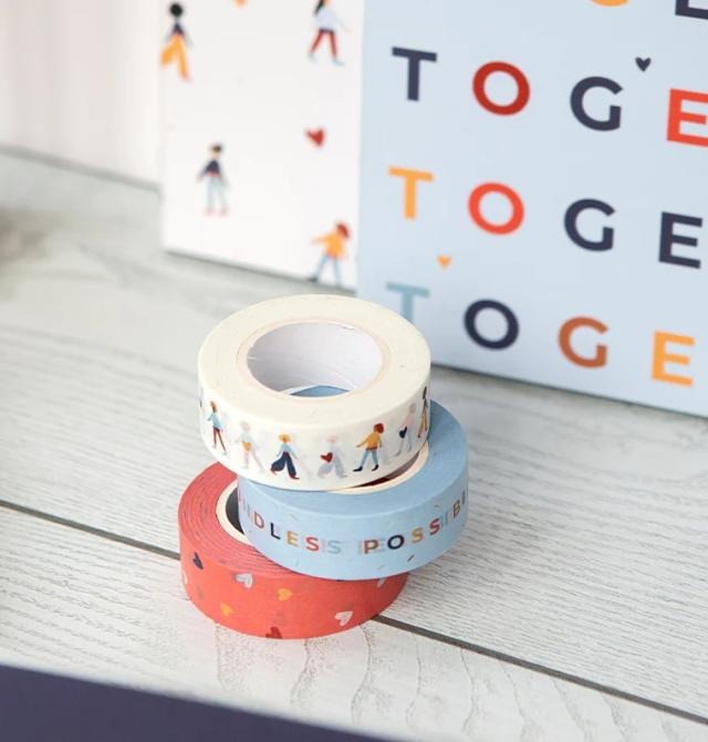 Togetherコレクションの美しいブルー、オレンジ、イエローの3色の和紙テープのセットで、飾り付けを楽しんでください。