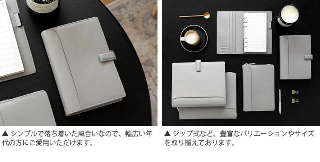 | 仕様 | 見開き左:カードポケットx4、スリップポケット 見開き右:スリップポケット、伸縮性ペンホルダー 外側:ジップポケット、スリップポケット |