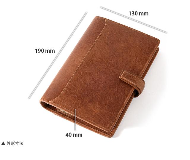 軽くオイルを塗った艶出し仕上げの高級フルグレインバッファローレザーシステム手帳。伝統的な外観と現代的な機能性が融合しています。