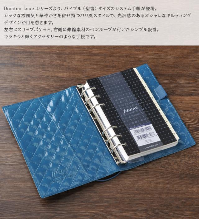 ファイロファックス システム手帳 ドミノ リュクス バイブルサイズ 聖書サイズ 6穴 リング径23mm キルティング エナメル 合皮 Filofax Domino Luxe 年号無し年間スケジュール付き 生産終了モデル