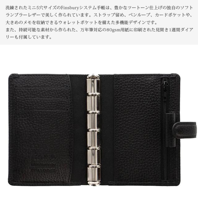 ファイロファックス システム手帳 フィンスバリー ミニ5穴サイズ リング径13mm Filofax Finsbury 本革 牛革 ブラック/ラズベリー/ビスタブルー/スレートグレー/マスタード