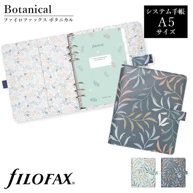 ファイロファックス システム手帳 ボタニカル A5サイズ Botanical Filofax 6穴 リング径30mm デスクサイズ 合皮 年号無し年間スケジュール他各種リフィル付き ベルトボタン留め式