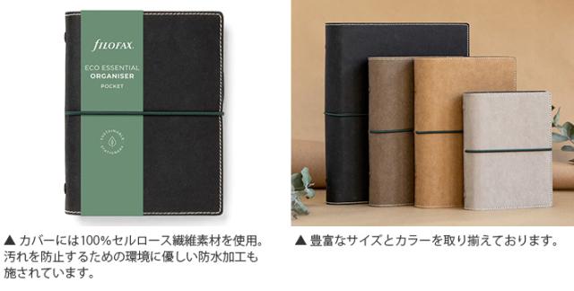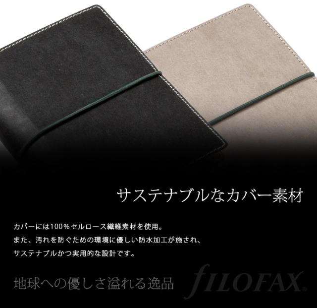 ファイロファックス システム手帳 ミニ6穴 エコ エッセンシャル ポケットサイズ スモール リング径19mm Eco Essential Filofax ゴムバンド式 年号無し年間スケジュール付き セルロース繊維素材