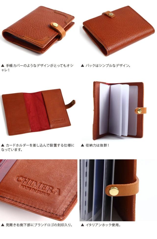 chimera キメラ カードケース イタリアンレザー ピッグスエード イタリアンホック 日本製 文房具 ステーショナリー 革小物 手帳型 カードホルダー スナップボタン