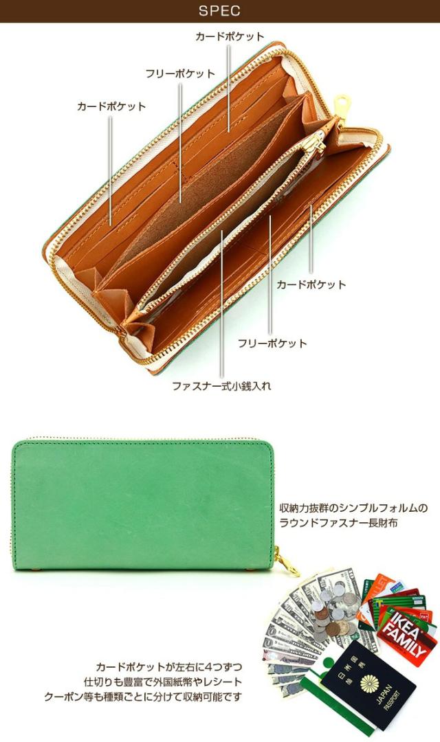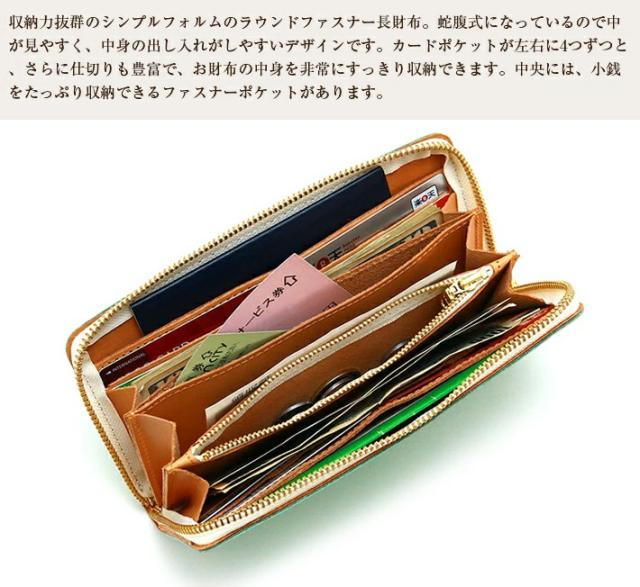 | 商品説明 | 収納力抜群のシンプルフォルムのラウンドファスナー長財布。蛇腹式になっているので中が見やすく、中身の出し入れがしやすいデザインです。カードポケットが左右に4つずつと、さらに仕切りも豊富で、お財布の中身を非常にすっきり収納できます。中央には、小銭をたっぷり収納できるファスナーポケットがあります。預金通帳やパスポートも収納できるサイズです。外国紙幣やレシート、クーポン等も種類ごとに分けて収納可能です。ファスナーはYKK社製を採用。使い勝手に定評のある、AGILITYの定番長財布です。 |